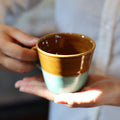 益子伝統釉薬4色を掛け合わせて展開する「2tone」シリーズ なかでも、「2tone マグカップ」は上下に釉薬を掛け分けていることから、焼成の環境などによって器の表情が大きく変化します。 大自然の素材と人間の手から生まれる陶器をお愉しみください。