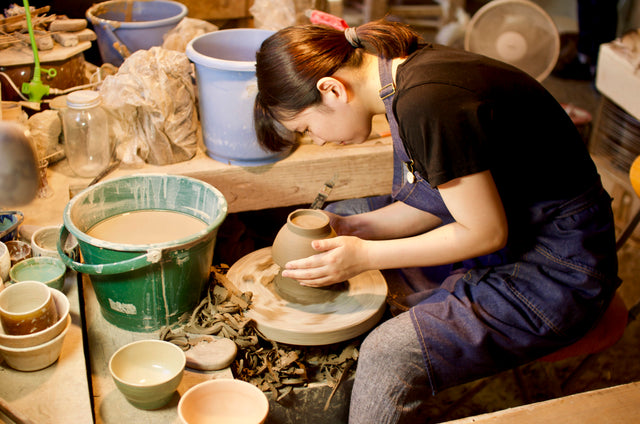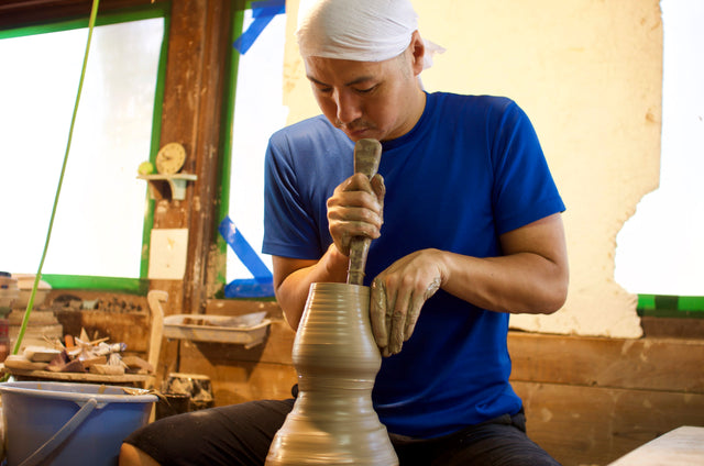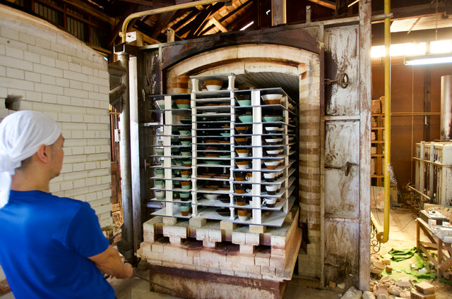 The glazed vessel is fired in a kiln. Bisque firing before glazing is about 800 degrees, but main firing requires a temperature of over 1200 degrees.