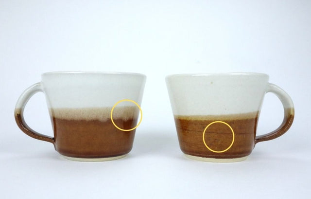 Uneven color of black glaze (parts with thin glaze turn deep brown)